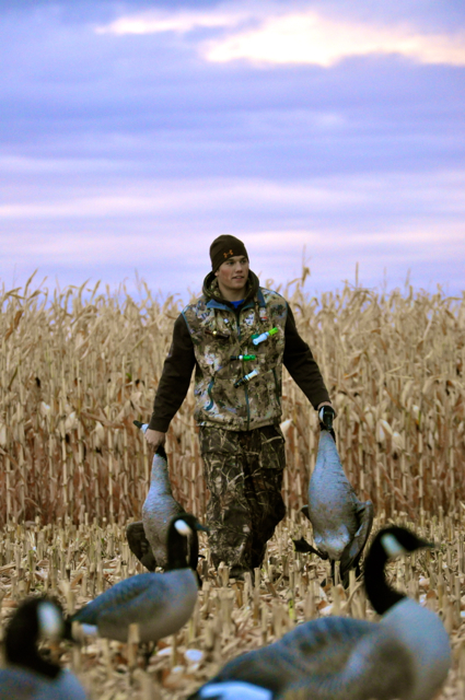 Little did we know, construction workers became our saving grace. Soon, they started ripping up the opposite side of the field as the birds started to arrive. They couldn’t land in the other side of the field, so they funneled into our spread. Even though some flocks favored one side of the spread, the vast majority put their feet down mere feet in front of the blinds.