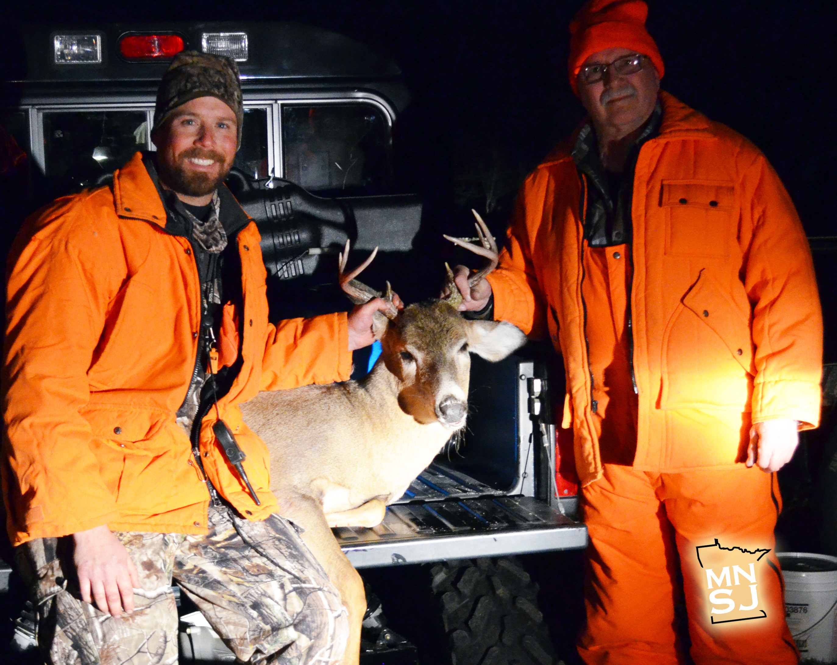 I climbed down and drove over to where they were parked and said, “Who shot the buck?”