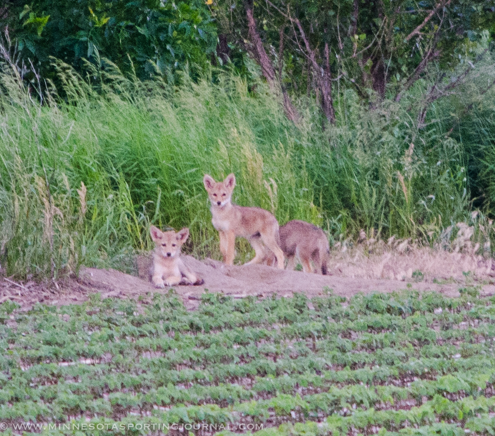 And how bout this picture of coyote pups that I saw yesterday romping next to a shelterbelt. They hadn’t ventured far from home as they kept popping in and out of their nearby den. We’ve got too many of these wandering around, but it was still cool to see them!