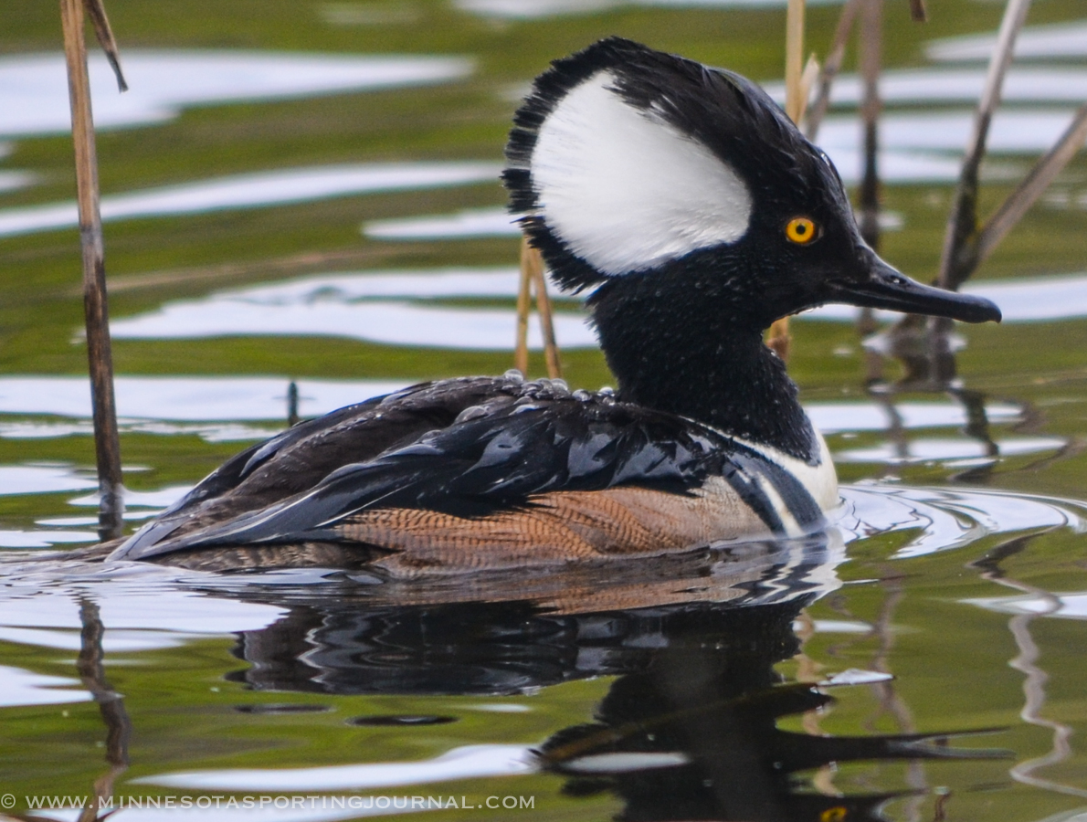 While mergansers aren’t considered the best table fare and most hunters will hesitate from pulling the trigger, the hooded merganser will be cause for the occasional exception. From the bright, white hood to the contrasting browns and blacks across it’s back.